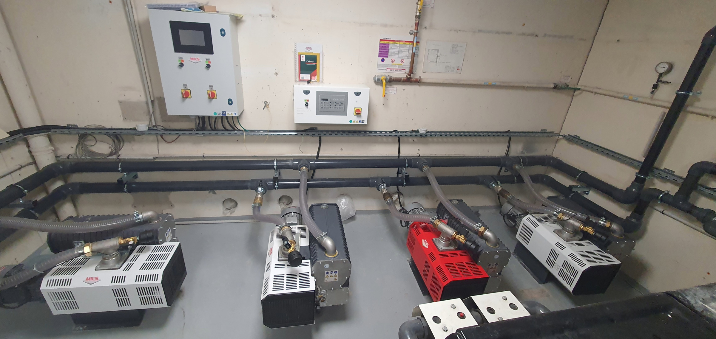 Raccordement en milieu Vinicole de 4 compresseurs d'air.